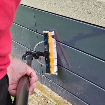 There are many benefits of using the water fed pole system such as, safety for you and us. It also has no environmental impact, and the soft bristled brushes and pure water are designed to be gentle and safe for your windows, whether they are wooden, PVC, or metal framed. The brushes can clean all parts of the glass and frames, and due to the use of pure water, it leaves you with a spot free finish, with the water draining away afterwards without any chemical residue.